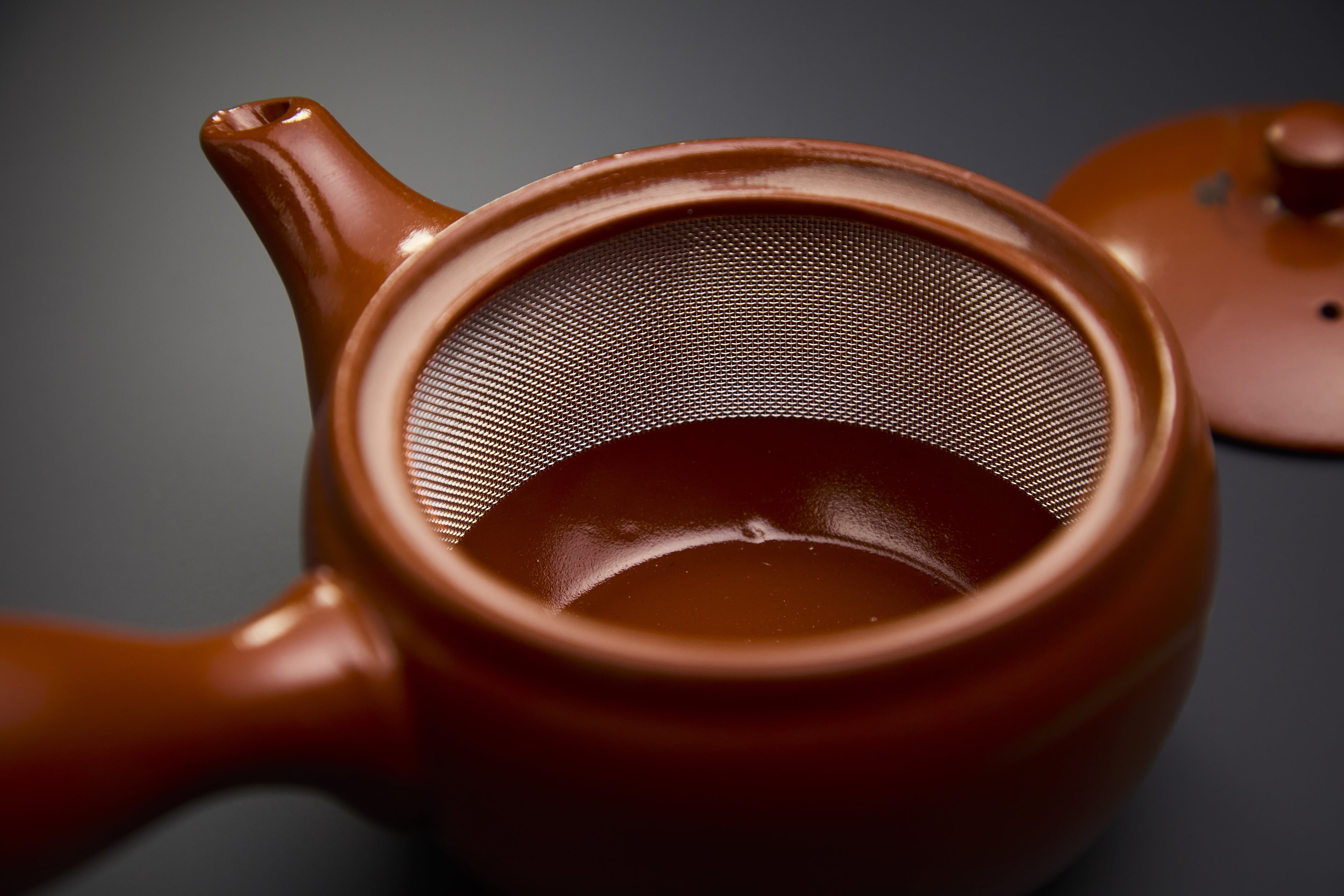 常滑焼 標準サイズ(270~320㏄)内側に帯状の網が一周セットされ細かい茶葉でも詰まりにくい作りです。